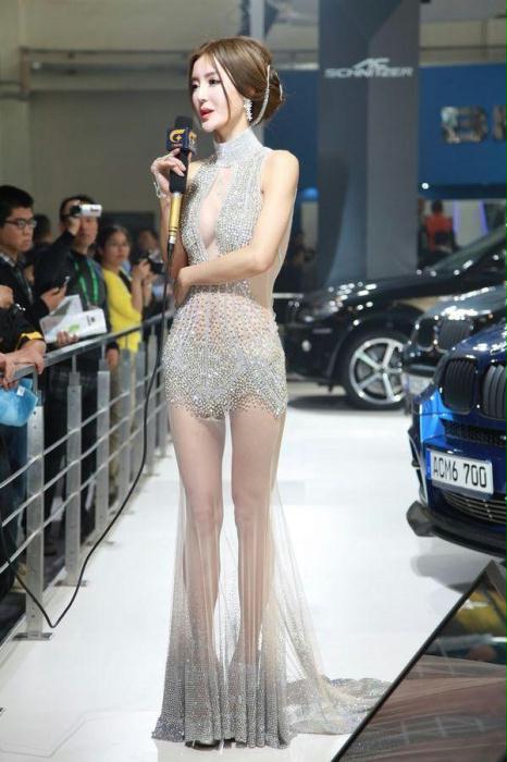 She came in not much materials but she does have a very serious looking helmet ... Beijing Auto Show is in trouble