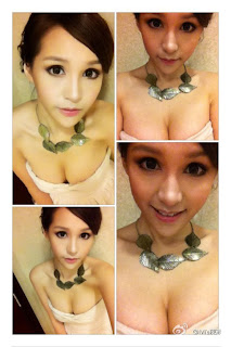 The versatile and tri-circle actress, known as goddaughter of Hong Kong famous star Chow Yun Fat (周润发), looks very glamorous in the suite, revealing her rounded boobs and slender figure.